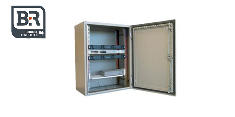 An IP66, 19 inch cabinet system designed to protect sensitive network equipment from harsh environments where equipment is exposed to dust or water.