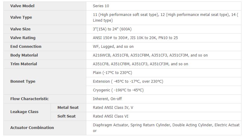 The series 10 high performance butterfly valves are mainly used for the control of fluids flowing in large valve at low differential