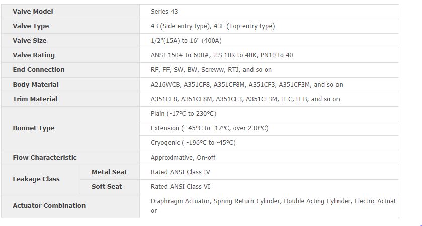 Series 43F have special shape of disc which is suitable for accurate throttling control and on-off service not only general